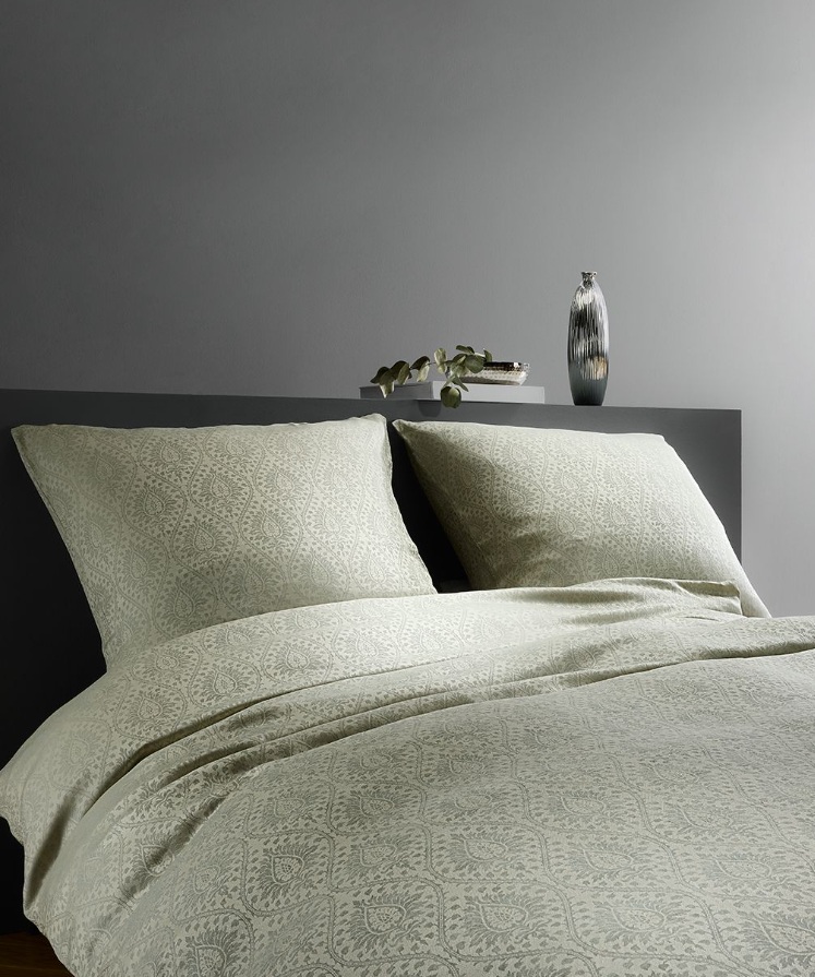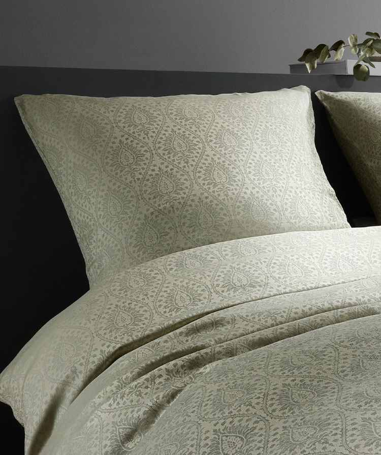 Das Dessin dieser Bettwäsche begeistert mit einem feinen Ornamentmuster in edlen Grüntönen, das dezente