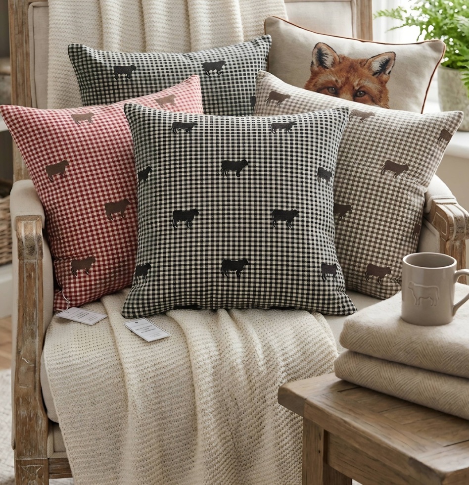 Sofakissen mit feinem Karo und gesticktem Kuhmotiv