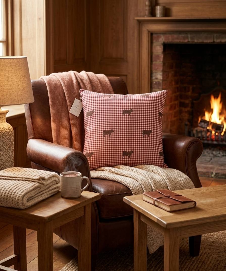 Sofakissen mit feinem Karo und gesticktem Kuhmotiv