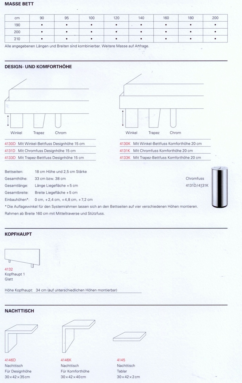 Bettfüsse entweder in der tieferen Designhöhe oder in der höheren Komforthöhe. Zur Ergänzung stehen ein elegantes