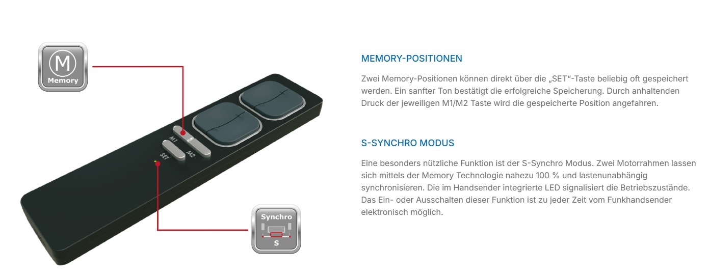 Durch die 4 Motoren können neben der Rücken- und Beinzone auch die Kopf- und Fusszone unabhängig voneinander verstellt