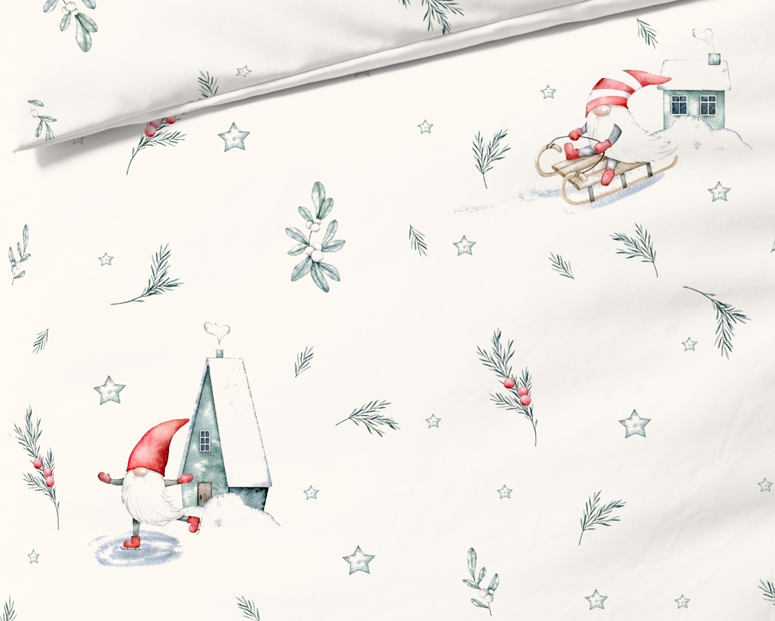 Dieses Dessin bringt spielerisch die Freude der Winterzeit ins Schlafzimmer.