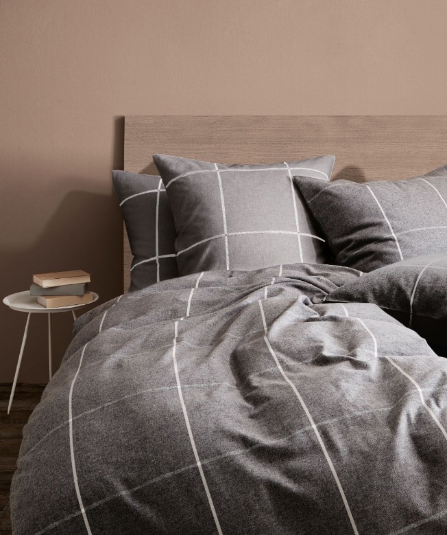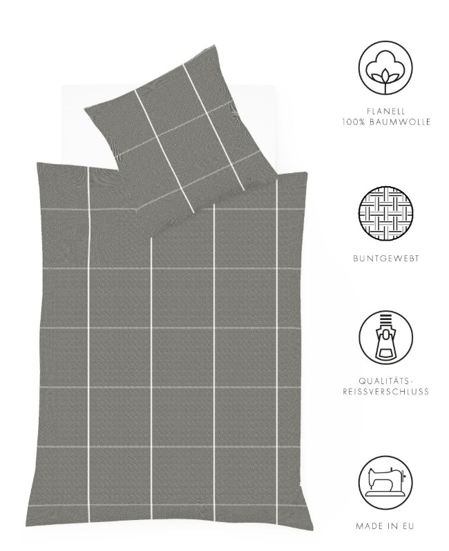 Fleuresse Flanell-Bettwäsche Lech Dunkelgrau Streifen und Karos