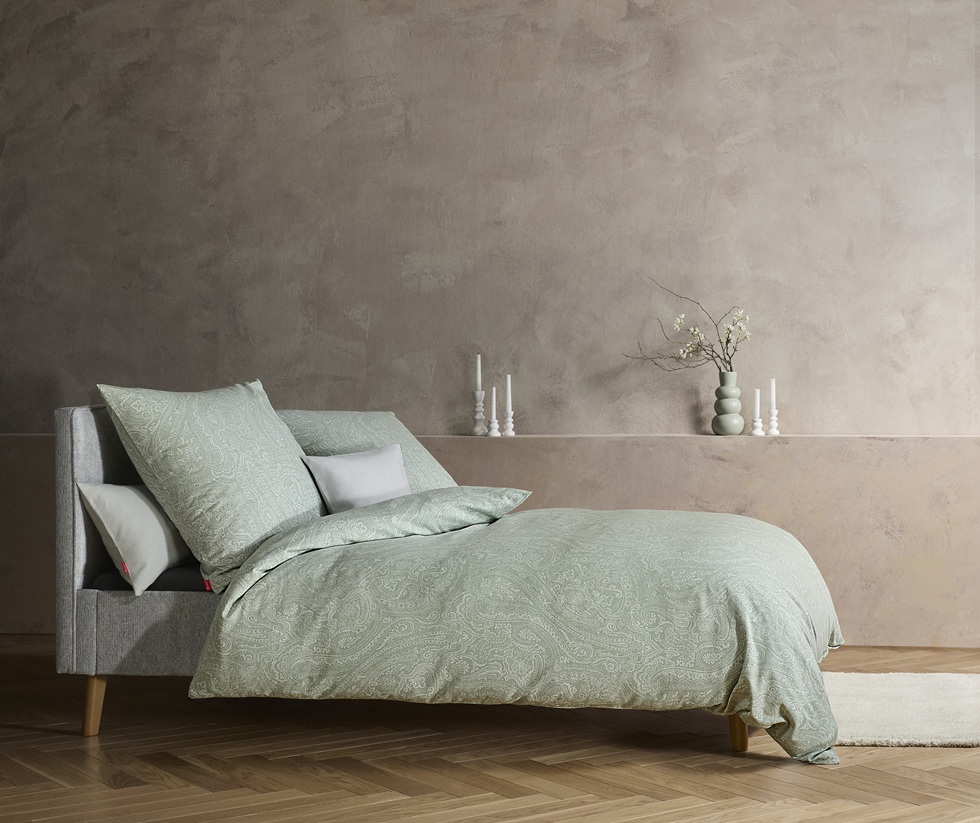 Fleuresse Flanell-Bettwäsche Lech Grün mit zartem Paisley