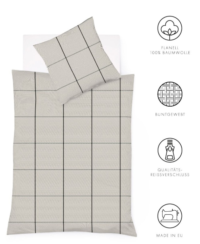 Fleuresse Flanell-Bettwäsche Lech Steingrau Streifen und Karos