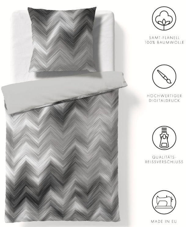 Flanell-Bettwäsche-Garnitur Valencia mit Samt-Finish und modernem ZickZack-Dessin