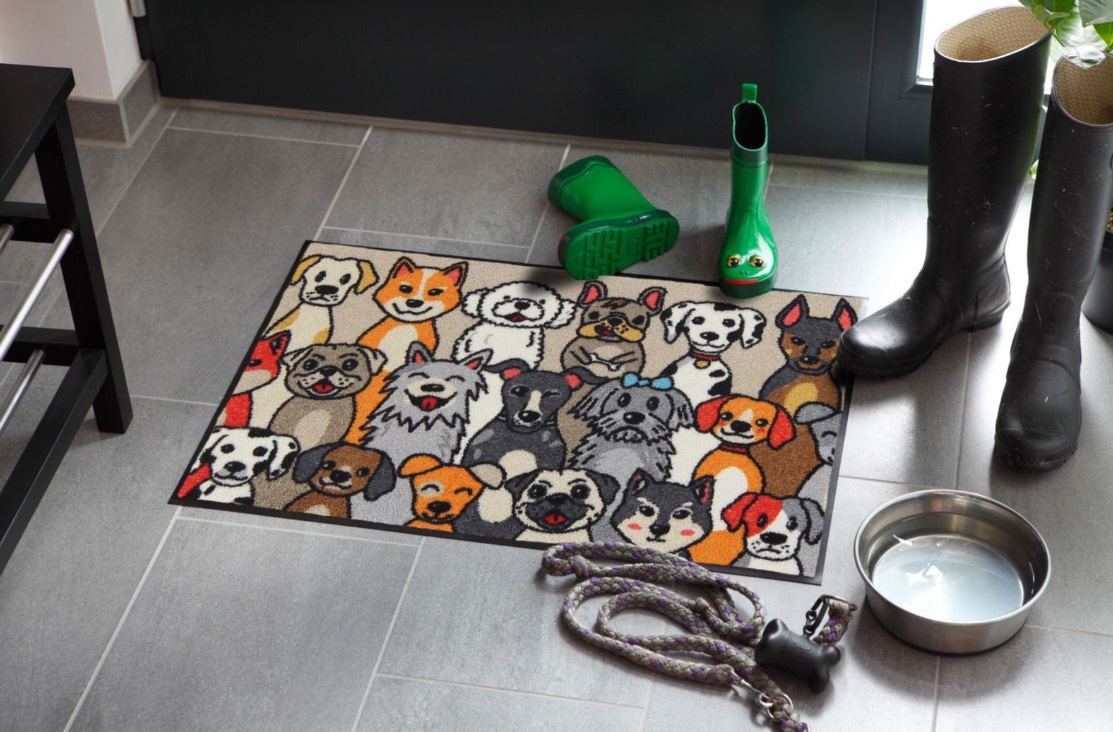 Die Schmutzfangmatte “Dog People” die in jede Wohnung und jede Waschmaschine passt.