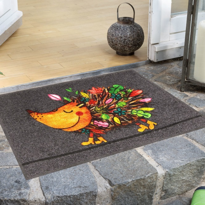 Die Fussmatte “Funky Hedgy” die in jede Wohnung und jede Waschmaschine passt.
