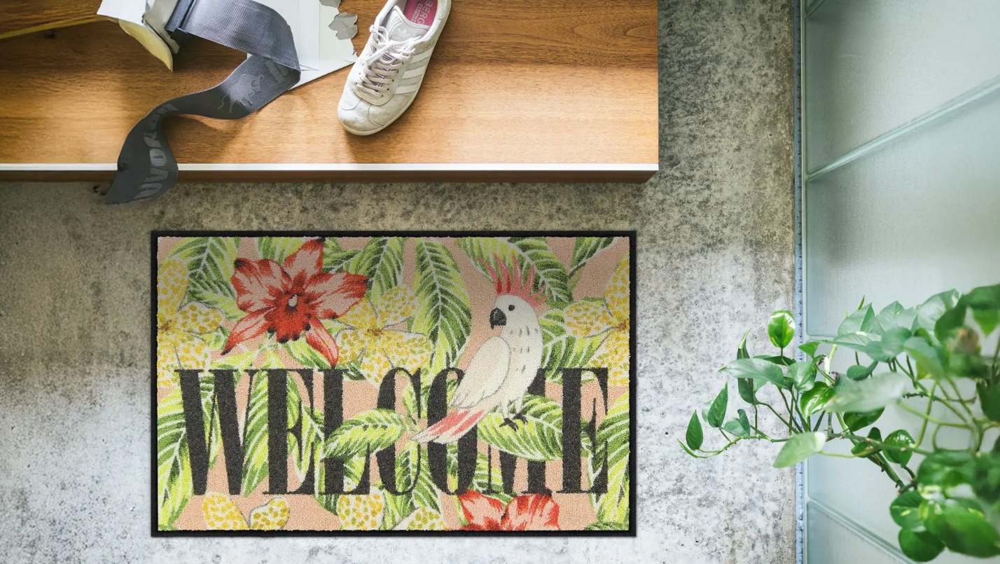 Die Fussmatte “Tropical Mood” die in jede Wohnung und jede Waschmaschine passt.