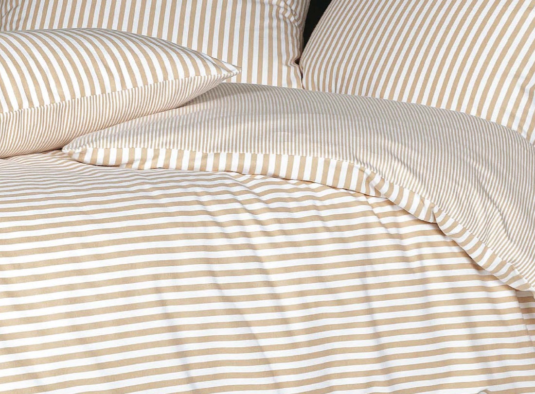 Edelflanell-Bettwäsche-Garnitur Janine Chinchilla-S „Streifenmuster in weiss-beige“
