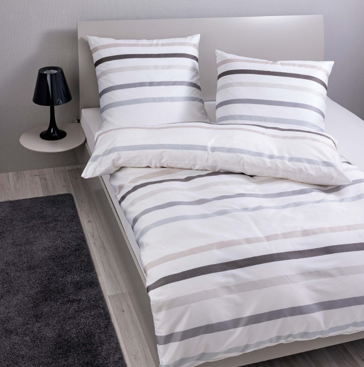 Janine moments-JD Satin-Bettwäsche „Streifen grau-beige“