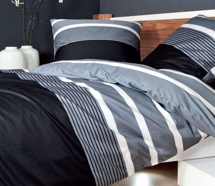 Janine-Satin-Bettwäsche moments-JD „Streifen-Dessin in silber-schwarz“