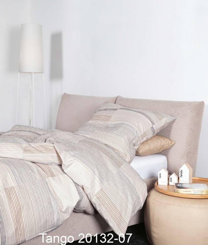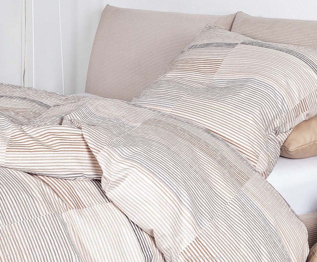 Janine Mako-Soft-Seersucker-Bettwäsche-Garnitur Tango „mit braunbeigen Streifen“