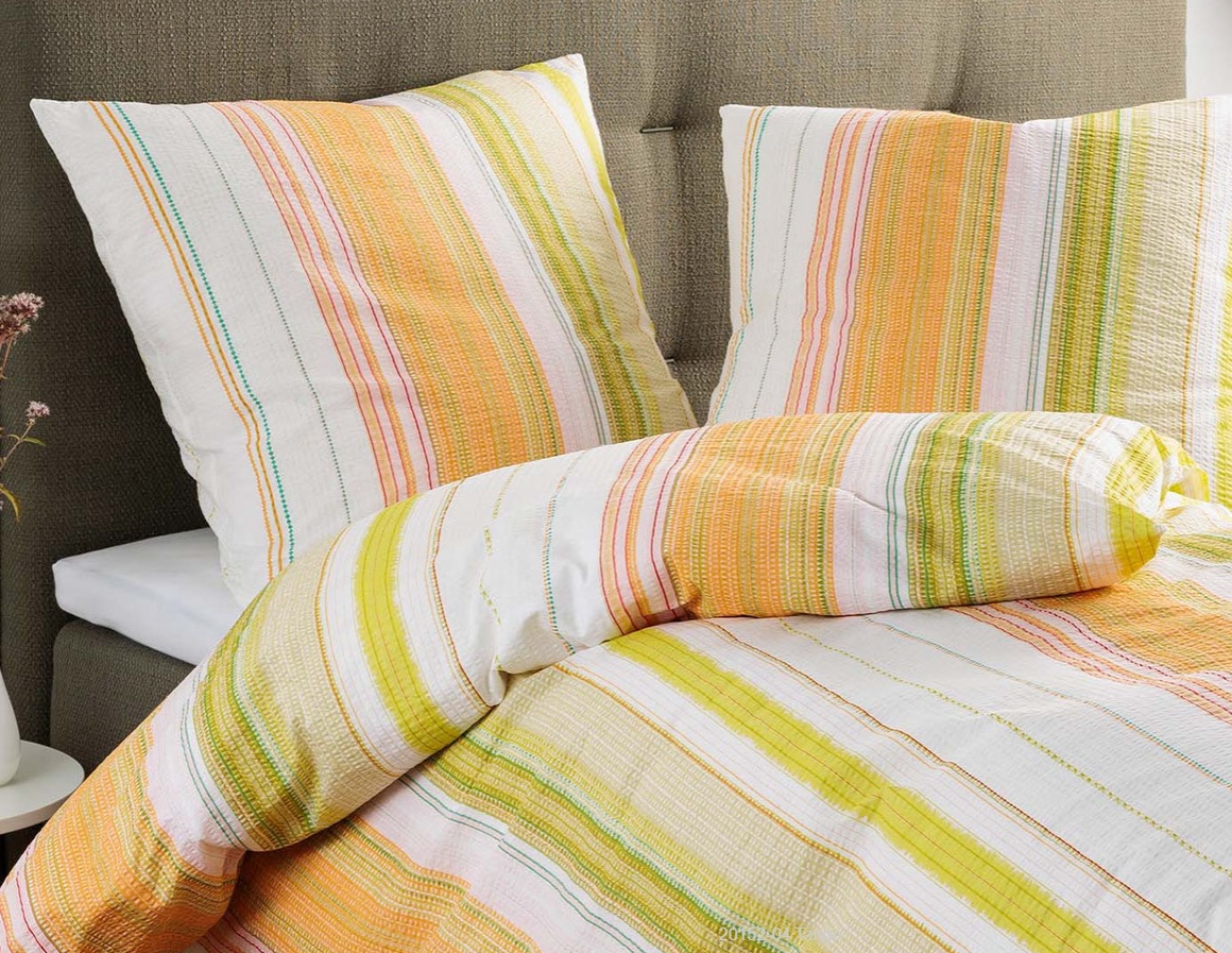 Janine Mako-Soft-Seersucker-Bettwäsche-Garnitur Tango „mit orangen Streifen“