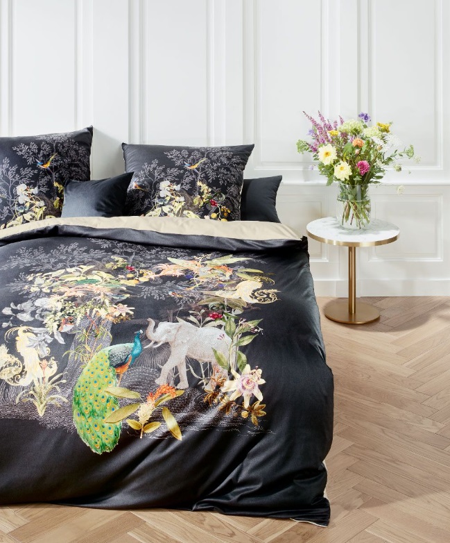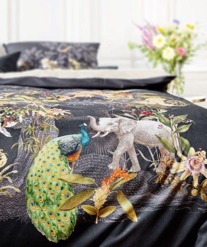 Auf dieser hochwertigen Jersey-Bettwäsche entfaltet sich ein kunstvolles Zusammenspiel mit exotischen Tieren