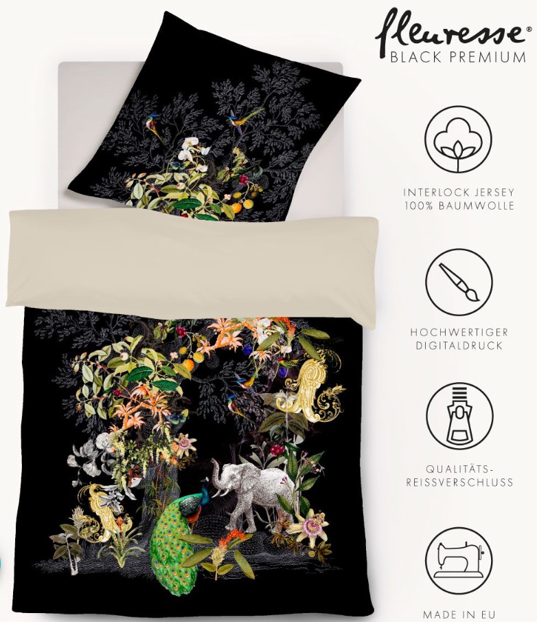 Black-Premium Jersey-Bettwäsche „Exotische Tiere“