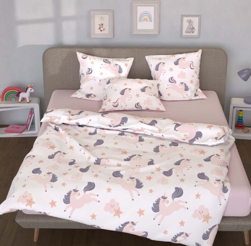 Einhorn Renforcé Kinder-Bettwäsche Lotus