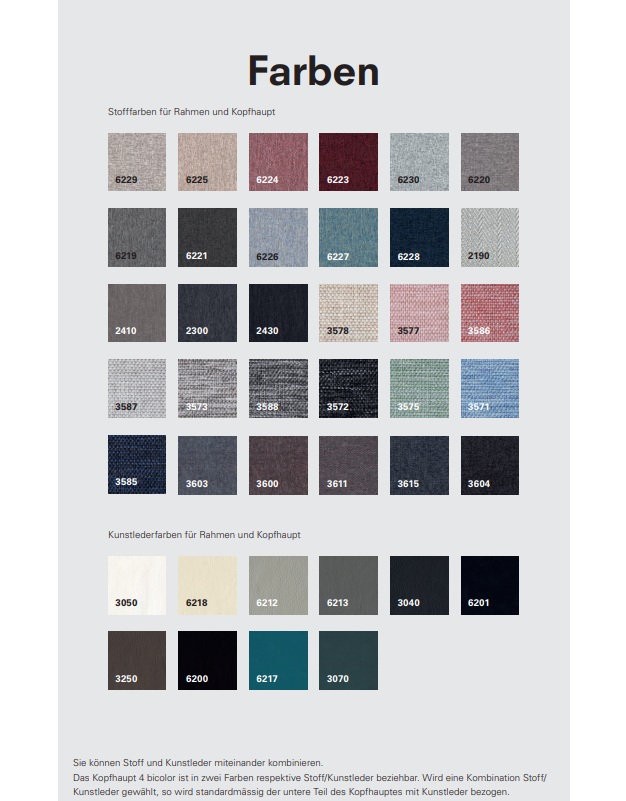 – Kopfhaupt Typ 4B bicolor kann mit Stoff und Kunstleder kombiniert werden