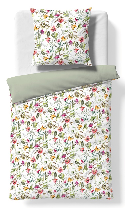 Traumhaft. Die Uni-Rückseite in hellgrün unterstreicht die Farbenpracht dieser Satin-Bettwäsche.