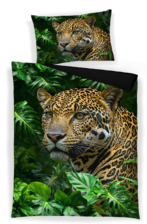 Satin Bettwäsche LaBelle Leo schwarz-grün Digitaldruck