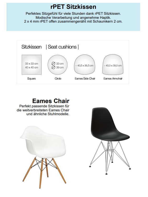 sie gute Laune. Ob rund, eckig, für den Eames Side-Chair oder den Eames Arm-Chair – rPET schützt die