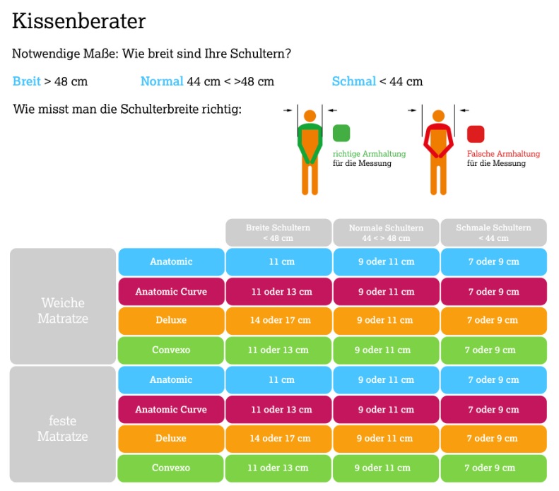 – für Seitenschläfer, Bauchschläfer, Rückenschläfer, Normalschläfer, Schwitzer