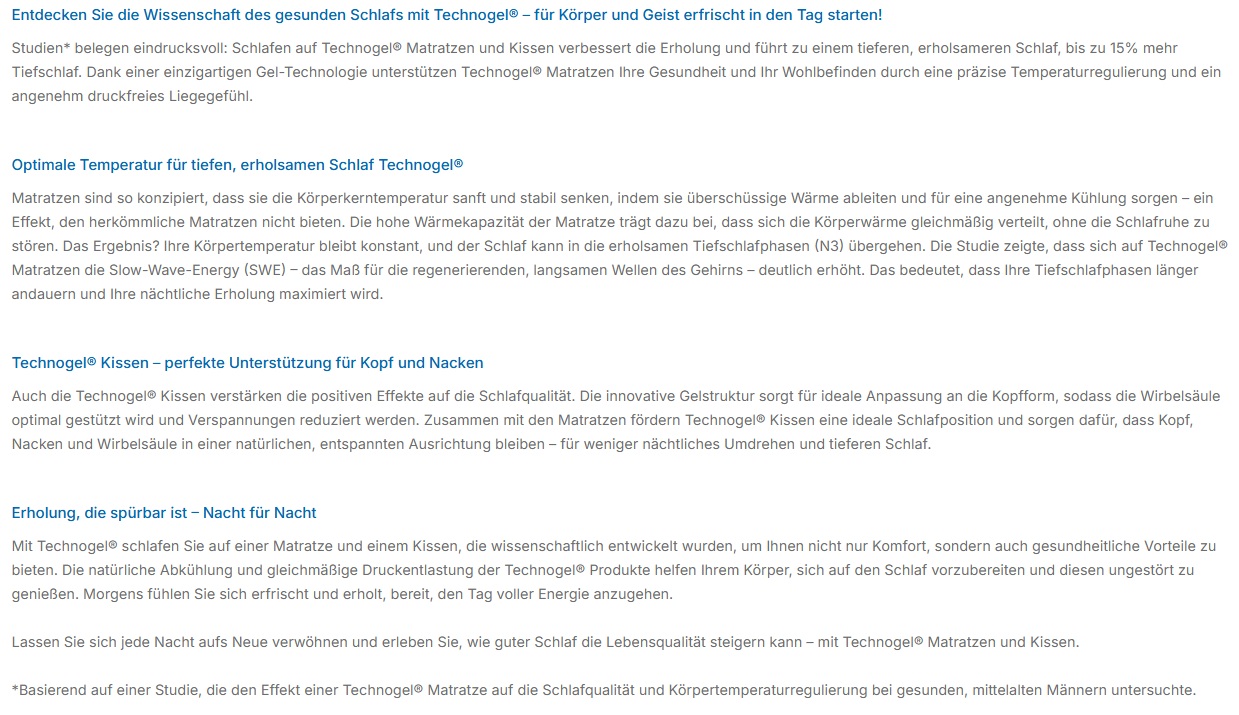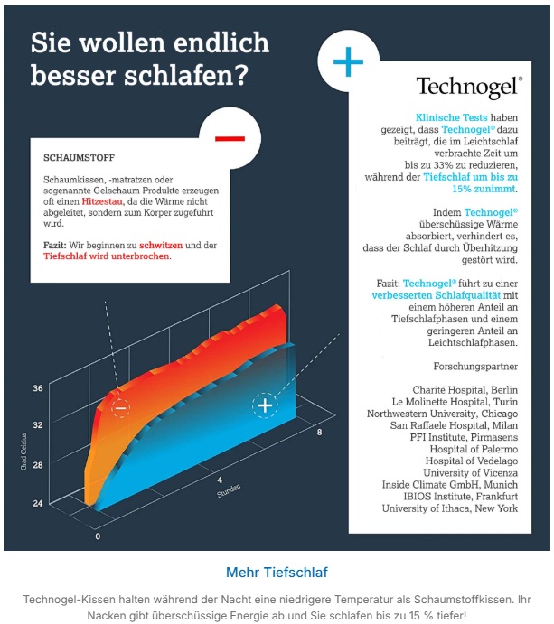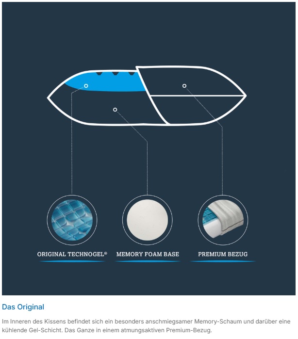 Technogel präsentiert mit seinem patentierten Material innovative Gel-Kissen, welche sich unserem Körper wie Wasser anpassen.