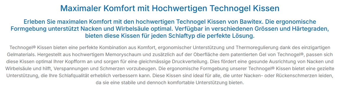 Schaumstoff der Technogel-Kissen eine zusätzliche Druckentlastung. Technogel®-Kissen werden mit grösster Sorgfalt bis ins kleinste