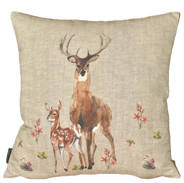Kuscheliges Fun-Kissen mit stolzem Hirsch und kleinem Hirschkalb überzeugt durch einen angenehm